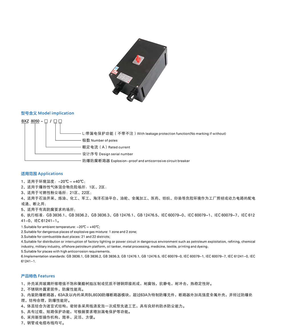 BXK8050系列防爆防腐控制箱(IIB、IC、DIP)